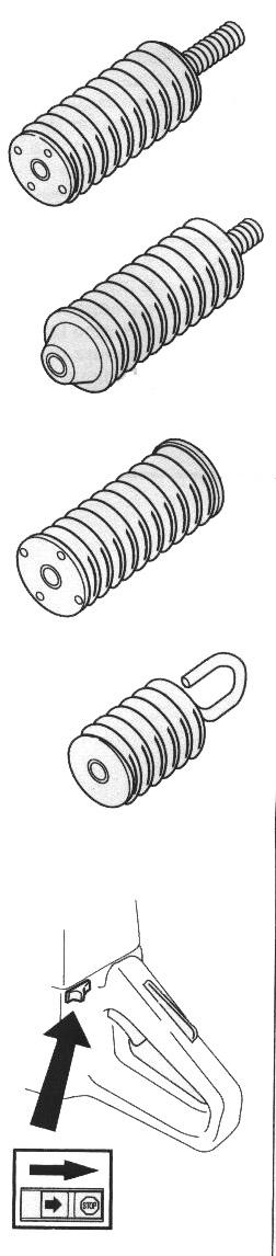 在使用一臺新的鋸軌機前: l 從頭至尾,認真閱讀操作手冊。 l 檢查鋸片的安裝及調(diào)整。詳見“安裝”一章。 l 啟動發(fā)動機并檢查化油器是否調(diào)節(jié)無誤。見“保養(yǎng)”一章中“化油器”一節(jié)在空氣/汽油混合正確的情況下,鋸片的停止應(yīng)該是慢慢減速直到最后靜止。緩慢減速的調(diào)節(jié)在手冊中有說明。對運轉(zhuǎn)狀態(tài)的調(diào)節(jié)應(yīng)按此說明正確調(diào)節(jié)。在緩慢減速狀態(tài)未正確調(diào)好時,請不要使用鋸軌機! l 請讓您的Husqvarna的銷售商來負責必要的機器維修及調(diào)節(jié)。