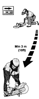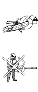 l 避免在不利條件下鋸軌,如:濃霧、大雨、強風或極冷的天氣等。在不利條件下工作易引起疲勞,甚至會出現(xiàn)危險后果。 l 若現(xiàn)場未準備就緒,或站立未穩(wěn),請勿開始工作。檢查周圍有無雜物,確保鋸軌過程中不會有任何雜物意外落下或飛起而造成傷害。斜坡地段工作時,更要加倍注意。 l 在鋸片旋轉(zhuǎn)狀態(tài)下,要隨時注意,不要讓衣服或身體的某一部分接觸鋸片。 l 發(fā)動機啟動后,請保持您的位置遠離鋸片。 l 啟動前,務(wù)必確保所有安保裝置都已安牢。 l 為保安全,請務(wù)必確保工作現(xiàn)場照明充足。 l 對操作者而言,有些工作位是強制要求的。 l 檢查周圍情況,確保沒有任何電線電纜橫穿鋸軌區(qū)域。